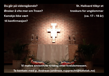 Inspirasjon og bakgrunn Pave Leo XIV har i sin nyttårsoppfordring fremhevet bibellesning som en sentral kilde til åndelig vekst. I lys av dette, og etterspørsel fra ungdommer i menigheten, er det planlagt å etablere en Bible Study-gruppe som gjør det lettere for ungdom og unge voksne å nærme seg Bibelen i fellesskap. I en rekke samtaler med menighetens ungdom og unge voksne er det gitt utrykk om behov for å: