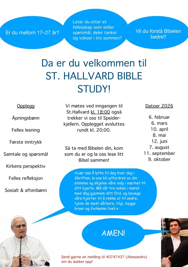 Pave Leo XIV har i sin nyttårsoppfordring fremhevet bibellesning som en sentral kilde til åndelig vekst. I lys av dette og etterspørsel fra ungdommer i menigheten er det planlagt å etablere en Bible Study-gruppe som gjør det lettere for ungdom og unge voksne å nærme seg Bibelen i fellesskap. I en rekke samtaler med menighetens ungdom og unge voksne er det gitt utrykk om behov for å: